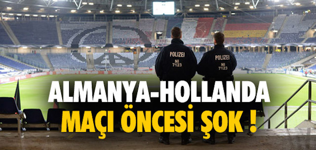 Hannover şehrinde oynanması beklenilen Almanya-Hollanda maçıda, maça sadece bir saat kala iptal edildi.