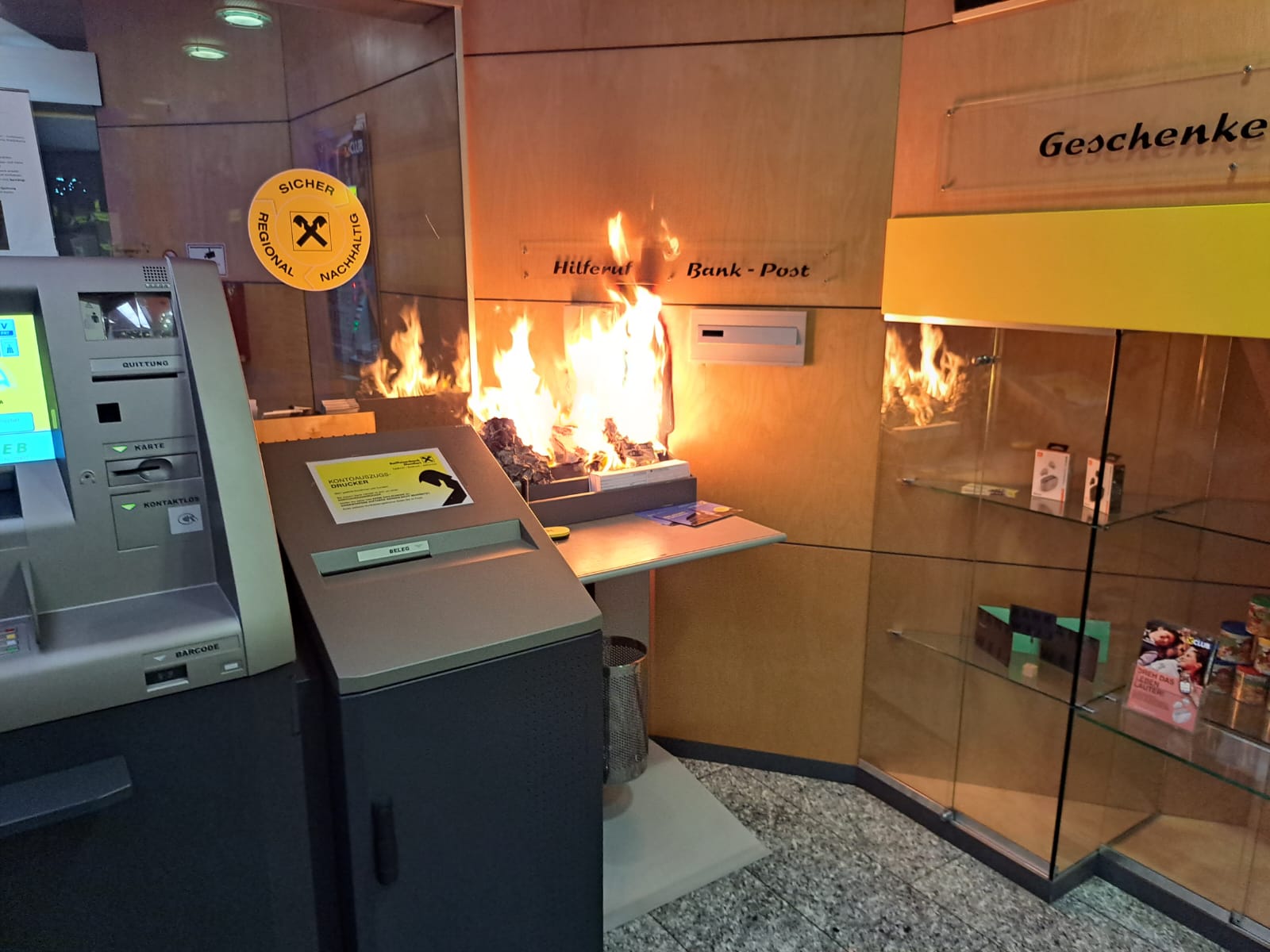 İkilinin Salı sabahı erken saatlerde Rankweil'deki bir bankanın fuayesine yanan bir kağıt torba attıklarından şüpheleniliyor. İkilinin daha sonra bir bar masasının üzerinde bulunan ödeme makbuzlarını ateşe verdiği ve bunun da küçük bir yangına neden olduğu iddia ediliyor. Rankweil itfaiyesi yangını kısa sürede söndürmeyi başarmıştı.