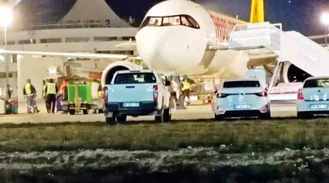 Bunun üzerine rotasını değiştiren uçağın acil iniş yapacağı Antalya Havalimanı’nda güvenlik önlemi alındı. Polis, itfaiye ve sağlık ekipleri pist çevresinde konuşlandırıldı. Uçak, saat 23.30 sıralarında Antalya Havalimanı’na iniş yaptı. Ekipler uçak içerisinde arama çalışması gerçekleştirdi. Ardından kargo bölümünde yolculara ait valizler X-Ray cihazından geçirildi. Burada da herhangi olumsuzluk yaşanmaması üzerine valizler tekrar uçağa alındı. Ekiplerin yaptığı araştırmaların ardından uçağın seferine devam edilmesine kararlaştırıldı. Yaklaşık 3 saat bekleyen yolcular tekrar uçağa alındı. Pegasus Havayolları’na ait TC-RDG tescilli Airbus 321 tipi uçak, dün gece saat 02.30 sıralarında Riyad’a gitmek üzere Antalya Havalimanı’ndan kalkış yaptı.