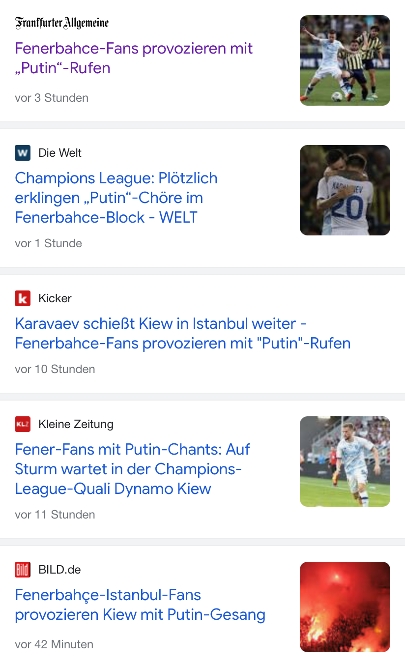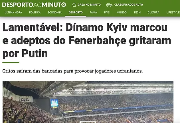 Portekiz basınından Desporto Ao Minuto ise "Rezalet! Dinamo Kiev golü attı. Fenerbahçeliler Putin diye haykırdı." başlığını kullandı.