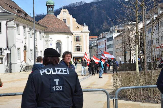 LPD Vorarlberg'e 300 kişilik bir gurup ile yürüyeceğini duyuran PEGİDA, 70 kişilik gösterici sayısına zor ulaştı.