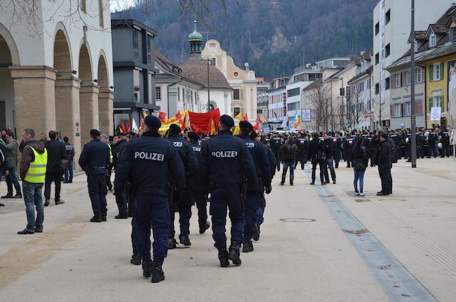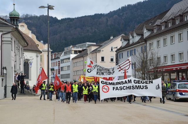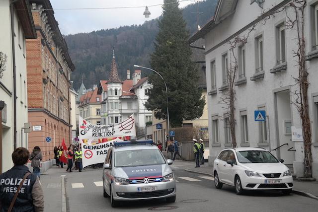 Bregenz İstasyonu önünde toplanan ve öncülüğünü "Sozialistische Jugend Vorarlberg"in yaptığı ve "Junge Grüne"ninde desteklediğini duyurduğu yürüyüş beklenildiği gibi yüksek katılım ile gerçekleşti.