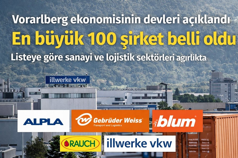 Vorarlberg’de faaliyet gösteren en büyük 100 şirket, ciro, çalışan sayısı ve çırak (stajyer) sayısı gibi kriterlere göre açıklandı. Her yıl düzenlenen “Top 100” listesi, bölgenin ekonomik gücünü ortaya koyarken, sanayi ve lojistik sektörlerinin ağırlığı dikkat çekti.