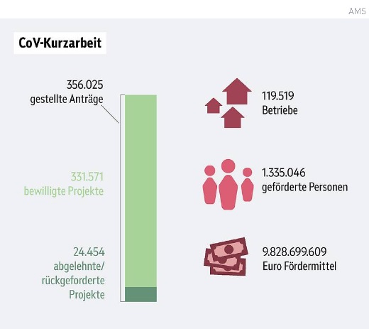 Mart 2020'de koronavirüs pandemisinin başlangıcında, eski Şansölye Sebastian Kurz (Avusturya Halk Partisi, ÖVP) "istihdamı güvence altına almak için" sloganı olarak "ne pahasına olursa olsun" demişti. Avusturya Kamu İstihdam Hizmeti (AMS) ve Çalışma Bakanlığı'na göre, Covid-19 kısa süreli çalışma durumunda, bu 2023 sonbaharına kadar 9,8 milyar avrodan fazla tuttu. Sayıştay'a göre yardım etkili ancak çok pahalıydı.