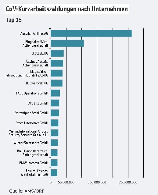 ORF'in erişimine açılan listede, Eylül 2023'e kadar onaylanan tüm kısa çalışma başvuruları ve bunların tutarları şirket isimlerine göre ayrıştırılmış olarak sergilendi. Bir istisna dışında: bilanço tutmak zorunda olmayan ve 100.000 avrodan az kısa çalışma yardımı alan şirketler listede görünmüyor. CoV-Kurzarbeit: Liste kimlerin milyonlar aldığını gösteriyor.