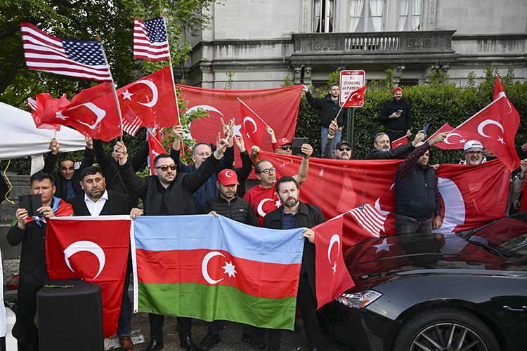 Eylemci gruplar, Türkiye’nin Washington Büyükelçiliği ve büyükelçilik konutunun yanı sıra Azerbaycan Büyükelçiliği önünde yürüyüş düzenleyerek Türkiye ve Azerbaycan aleyhine pankartlar taşıdı ve slogan attı.
