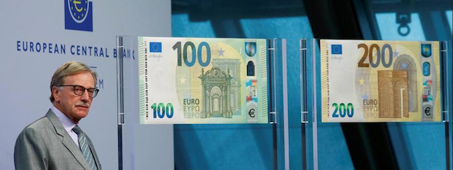 Avrupa Merkez Bankası Yönetim Kurulu üyesi Yves Mersch, piyasaya sürülecek yeni 100 ve 200 euroluk banknotları kamuoyuna tanıttı.