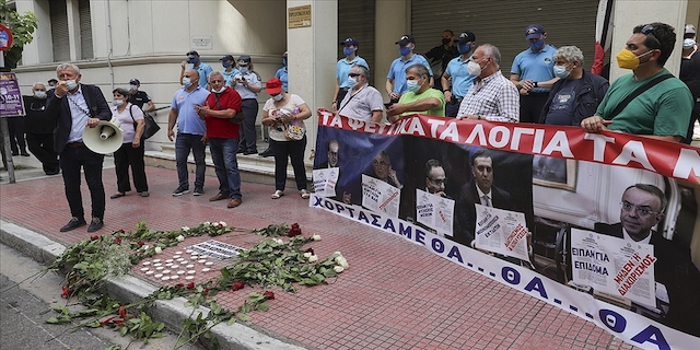 POEDİN Başkanı Mihalis Yannakos, grup adına yaptığı konuşmada, "Salgınla mücadelede başkalarının hayatlarını kurtarmak için kendi hayatlarını hiçe sayan sağlık çalışanları şimdi de hastalanmış sağlık sistemine karşı mücadele veriyor." dedi.