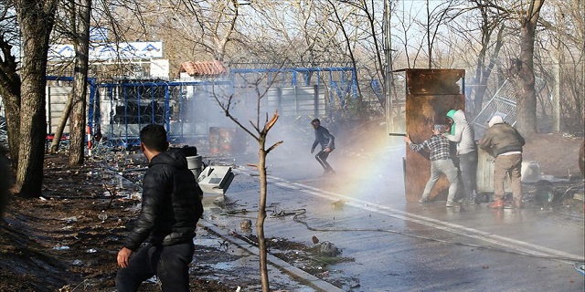 Yunan görevliler, tazyikli suyla ve gazla da müdahalede bulunuyor.