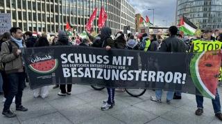 Almanya'nın başkenti Berlin'de Filistin'e destek amacıyla düzenlenen gösteride Almanya'nın İsrail'e silah sevkiyatı protesto edildi.
