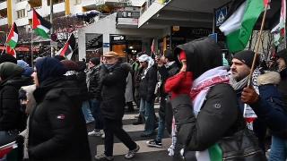 Almanya'nın başkenti Berlin'de yaklaşık 1500 kişi, Filistin ile dayanışma için gösteri yaptı.
