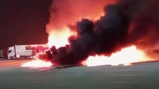 Kapıkule'de TIR'ın dorsesi alev alev yandı