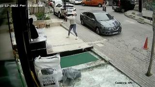 İstanbul Güngören'de bir esnaf, binanın üçüncü katından düşen kediyi havada yakaladı.