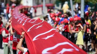 Büyük Zafer'in 100. yıl dönümü dolayısıyla Kütahya'nın Dumlupınar ilçesinde 3 bin 743 metre uzunluğunda Türk bayrağı açıldı.