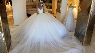 Koronavirüse karşı 500 metre kumaştan 'sosyal mesafeli' gelinlik
