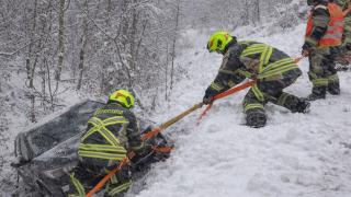 Kar Nedeniyle Kaza: Araç Şarampole Yuvarlandı